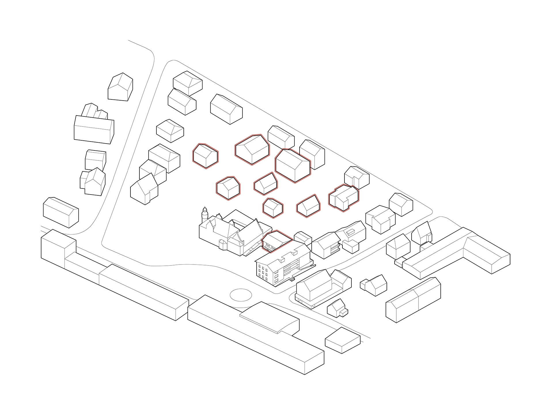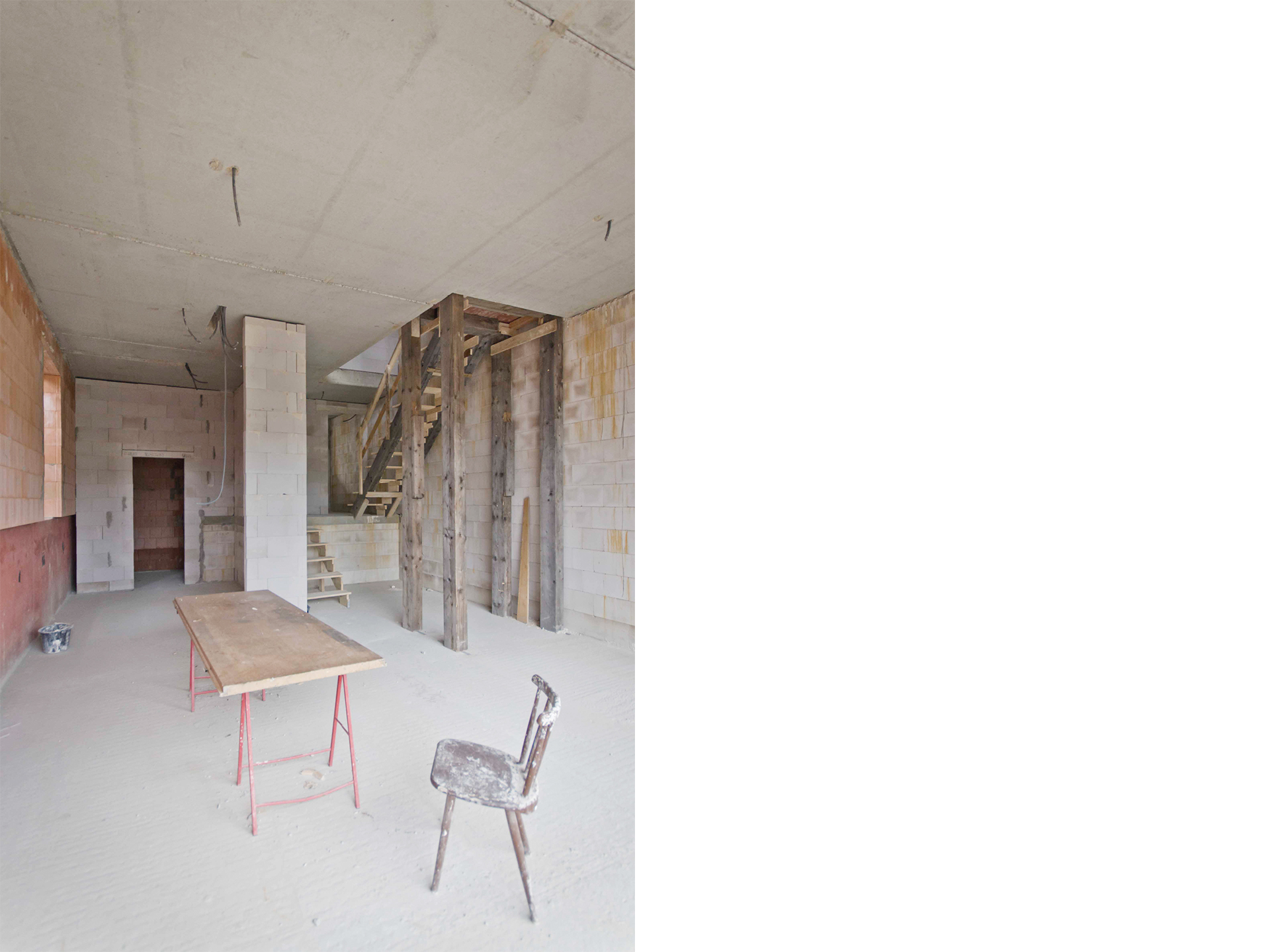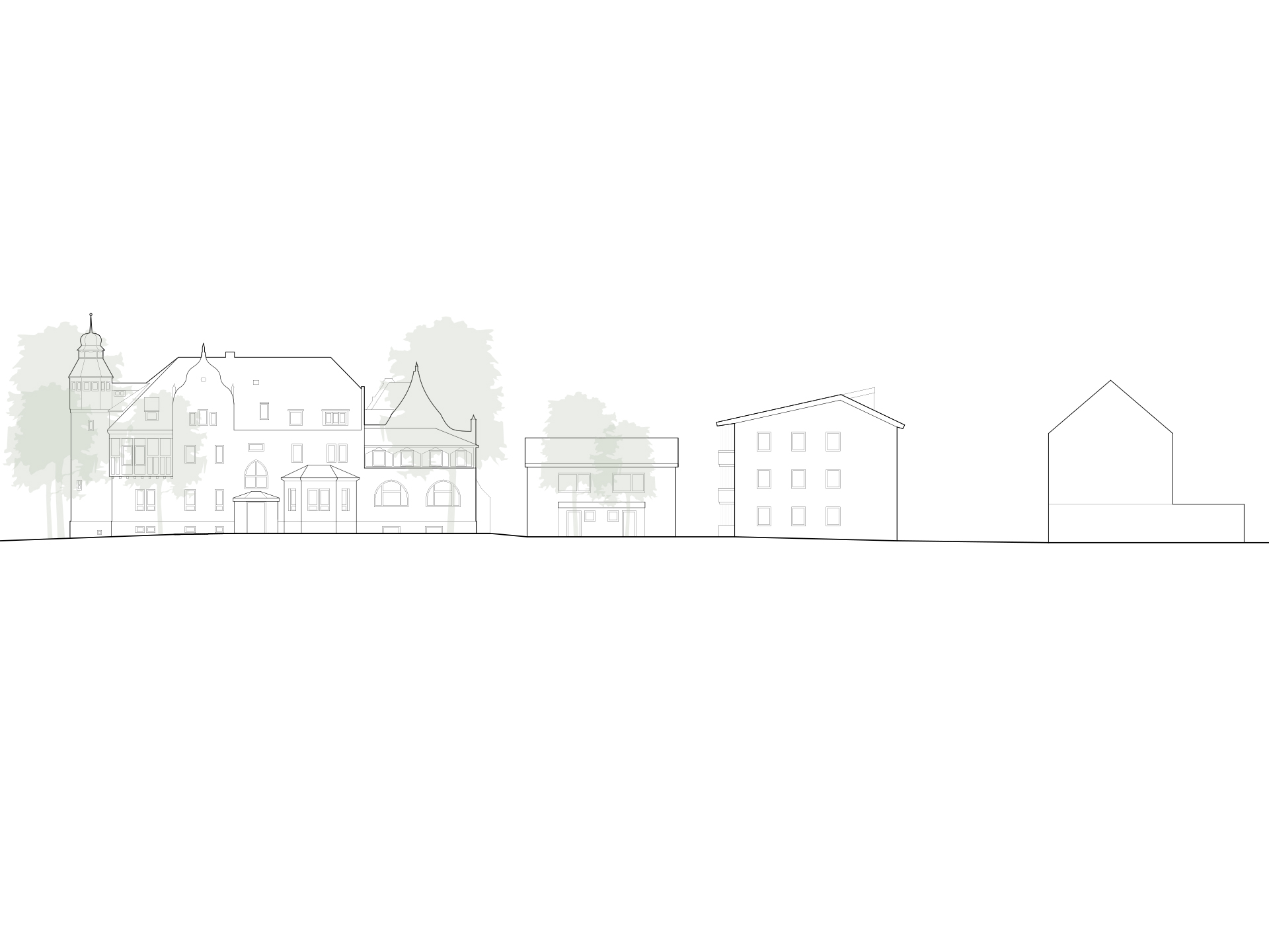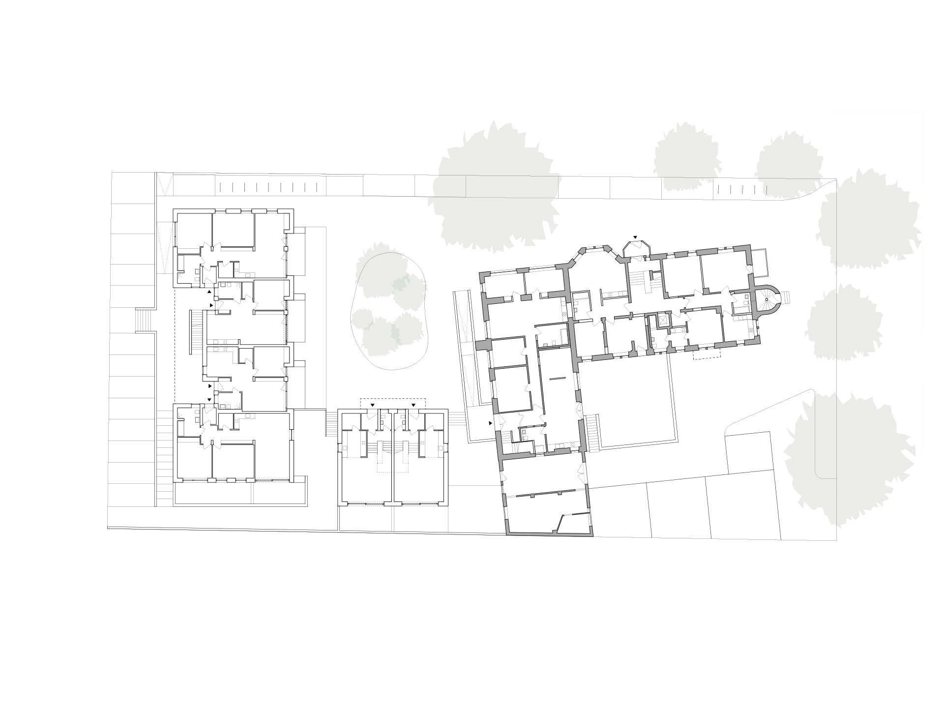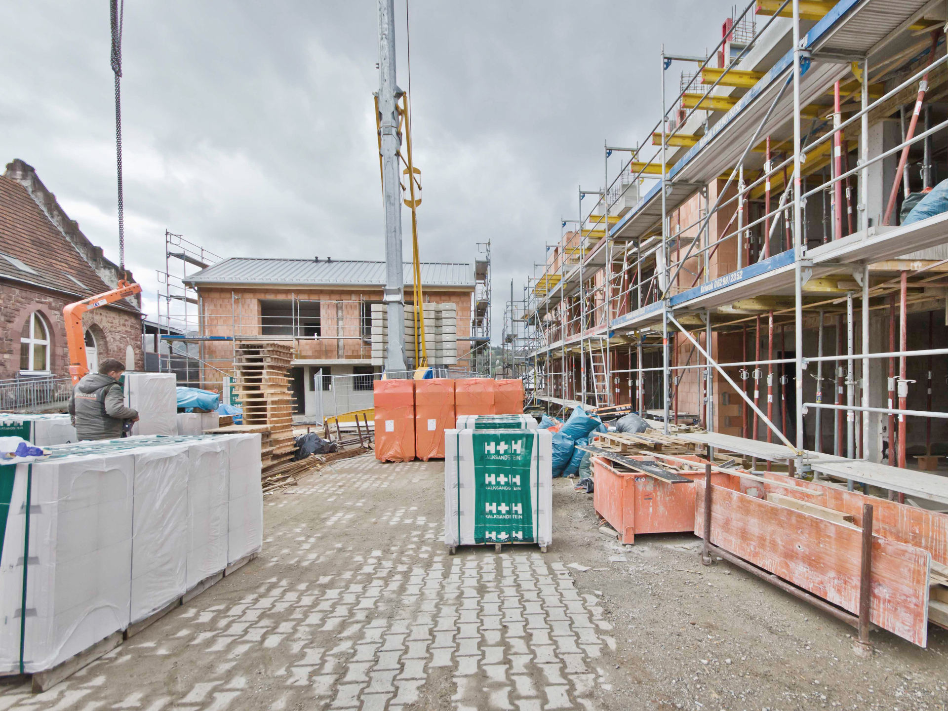In direkter Nachbarschaft der denkmalgeschützten Klingenburg entstehen ingesamt zwölf Wohnungen in einem Mehrfamilien- und zwei Wohnungen in einem Doppelhaus. Die beiden neuen Häuser bilden zusammen mit der im Bestand vorhandenen und 2014 bereits zu einem Wohnhaus umgebauten Klingenburg und dem ehemaligen Postgebäude an der Bahnhofstraße ein Ensemble am Ortseingang von Mosbach-Neckarelz. In der Ausformulierung ihrer Fassaden und Dächer nehmen die beiden Häuser die wesentlichen Elemente der umliegenden Bebauung auf. Die Sockelzonen aus rot durchgefärbtem gestocktem Beton stellen den Bezug zum rötlichen Natursteinmauerwerk der benachbarten Klingenburg her. Beide Häuser werden mit einem monolithischen Mauerwerk und Dachkonstruktionen in Holzbauweise errichtet.