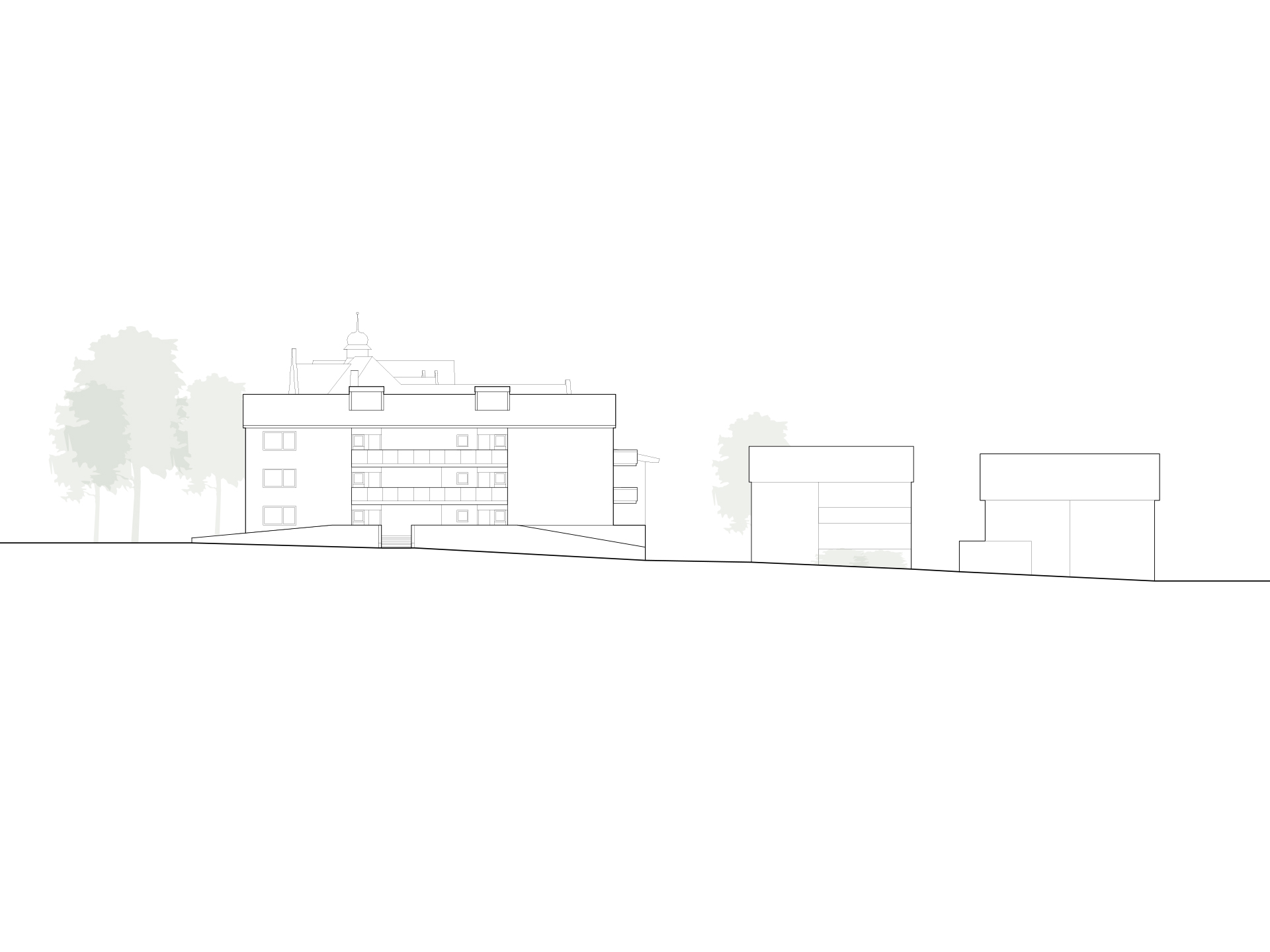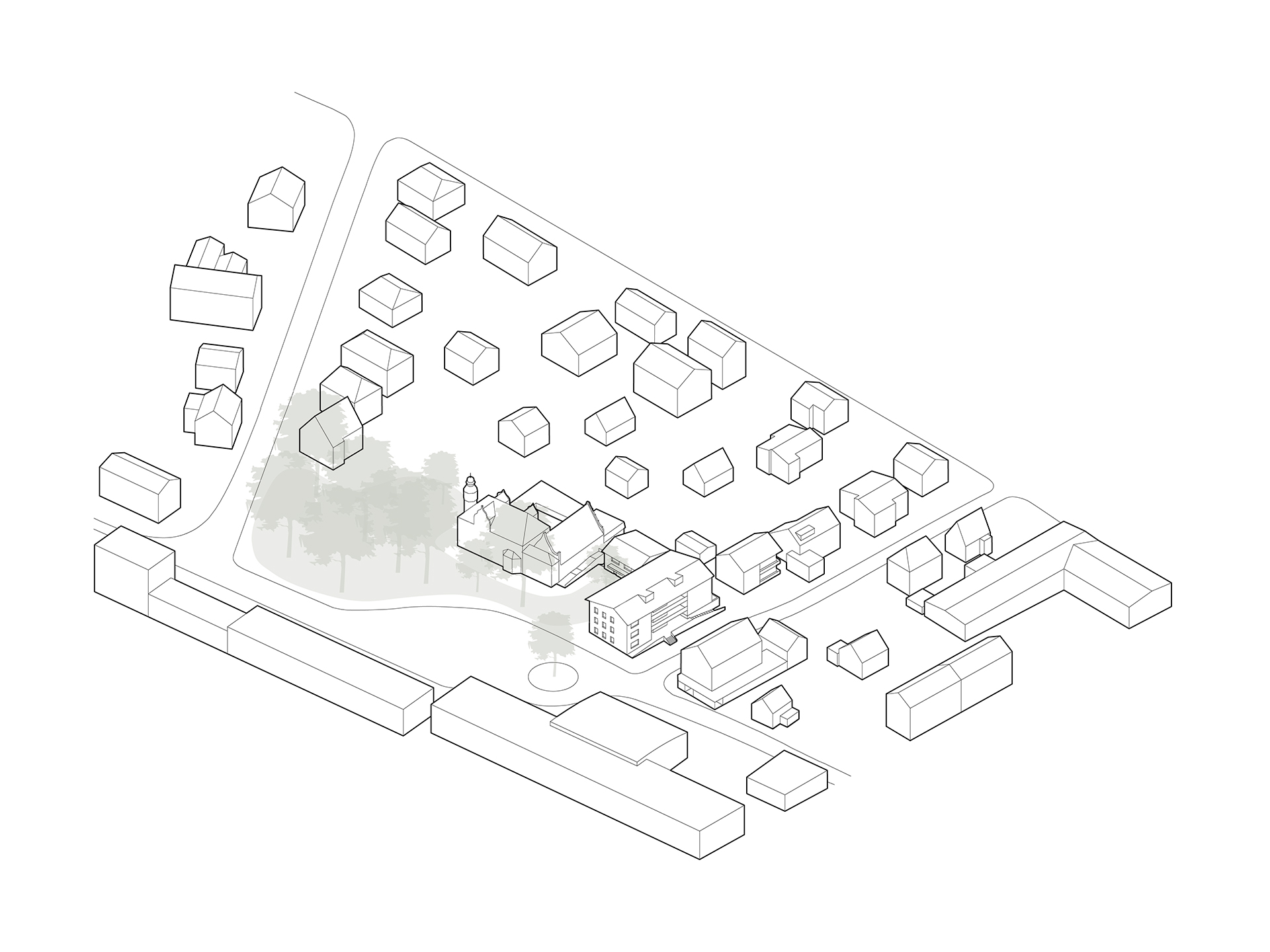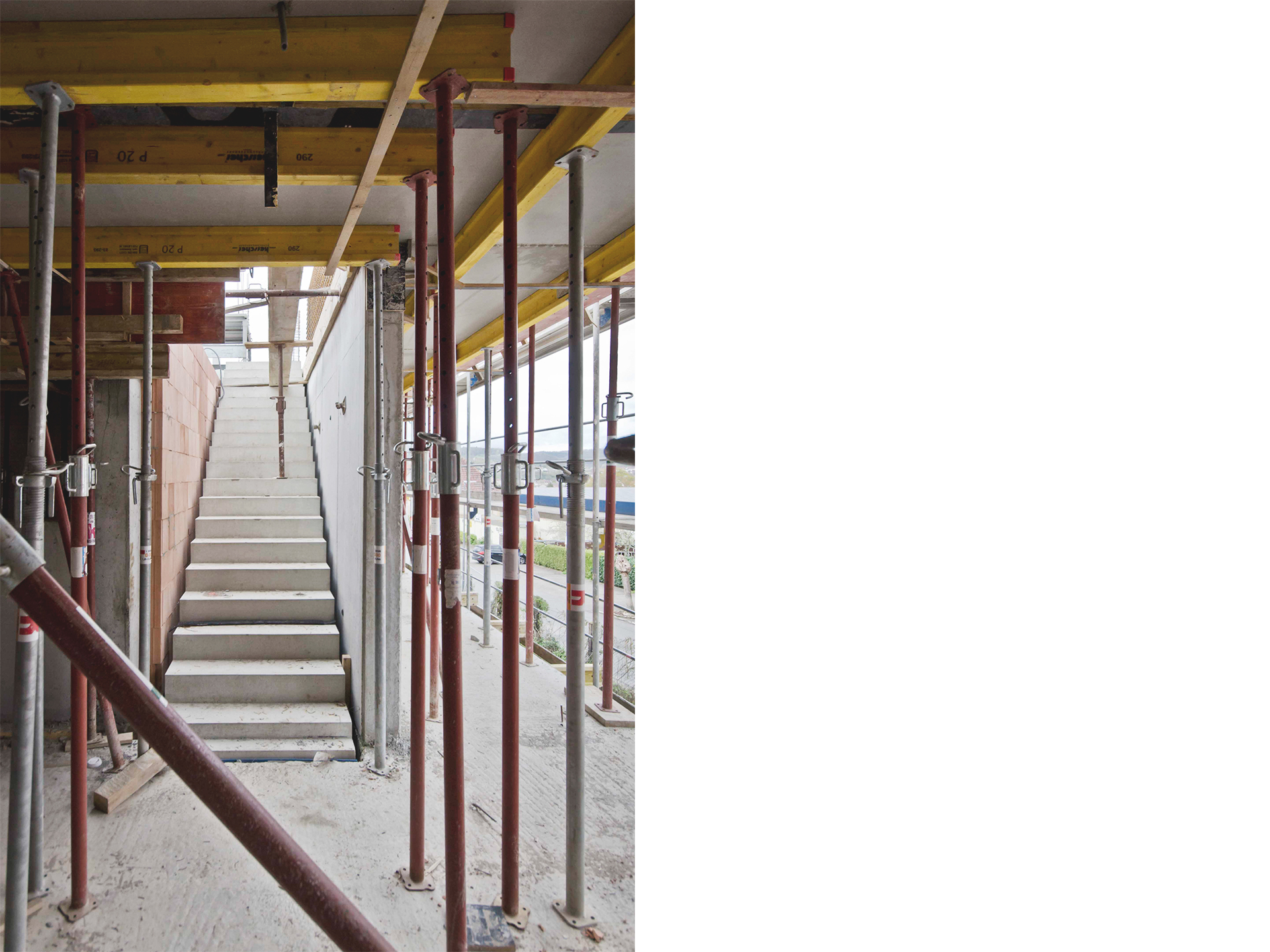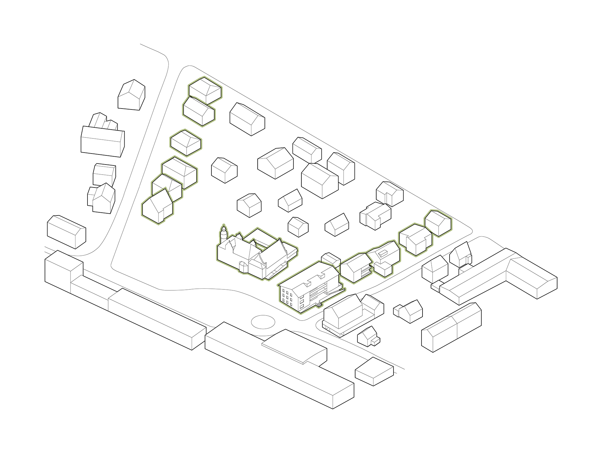 In direkter Nachbarschaft der denkmalgeschützten Klingenburg entstehen ingesamt zwölf Wohnungen in einem Mehrfamilien- und zwei Wohnungen in einem Doppelhaus. Die beiden neuen Häuser bilden zusammen mit der im Bestand vorhandenen und 2014 bereits zu einem Wohnhaus umgebauten Klingenburg und dem ehemaligen Postgebäude an der Bahnhofstraße ein Ensemble am Ortseingang von Mosbach-Neckarelz. In der Ausformulierung ihrer Fassaden und Dächer nehmen die beiden Häuser die wesentlichen Elemente der umliegenden Bebauung auf. Die Sockelzonen aus rot durchgefärbtem gestocktem Beton stellen den Bezug zum rötlichen Natursteinmauerwerk der benachbarten Klingenburg her. Beide Häuser werden mit einem monolithischen Mauerwerk und Dachkonstruktionen in Holzbauweise errichtet.